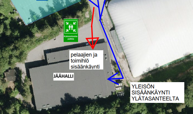 Hätätilanteessa kokoontumispaikka on hallin edessä: