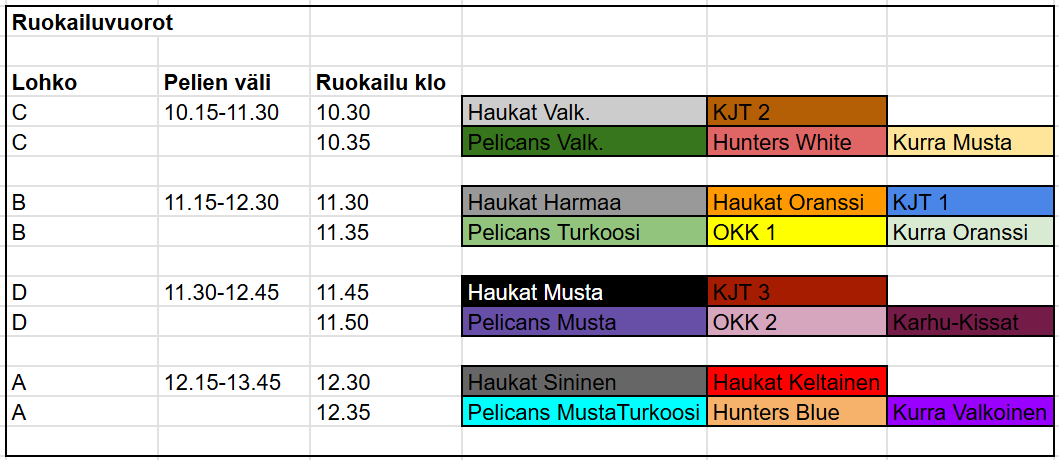 Ruokailu järjestetään jäähallilla joukkueiden pelaajille sekä toimihenkilöille, VIP-tiloissa, jäähallin 3.kerros.