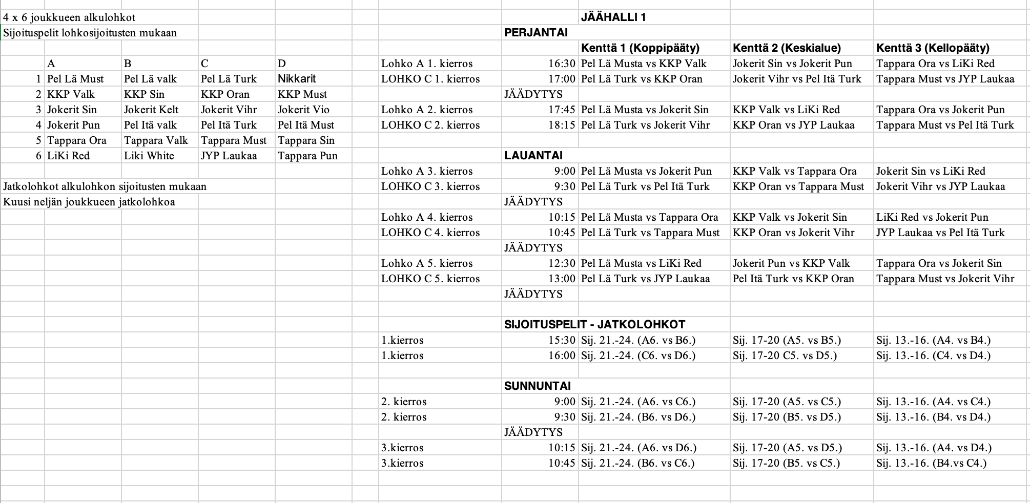 Alustavan (21.1.2026) otteluohjelman löydätte alta joukkueiden kera. Alempana yleiskaava lohkojaoille.