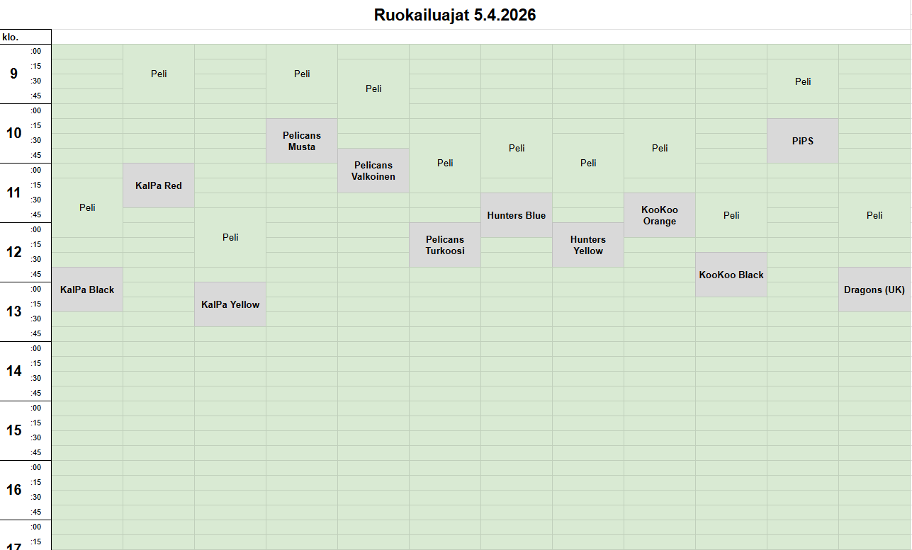 Tarkemmat ohjeet ruokailujen tilaamiseksi lähetetään joukkueiden yhteyshenkilöille.