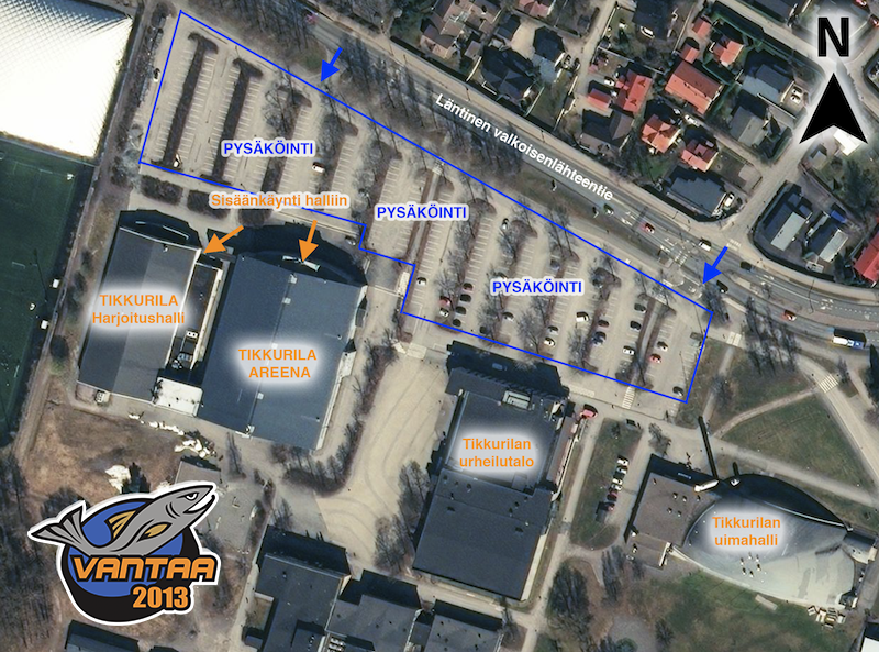 Jäähallin pihalla runsaasti ilmaista pysäköintitilaa.