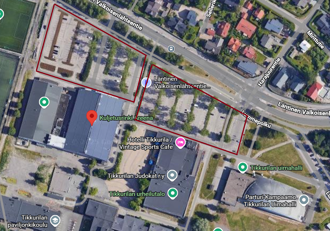 Tikkurilan Areenan (Kuljetusrinki Areena) ja harjoitushallin läheisyydestä löytyy ilmaisia pysäköintipaikkoja.