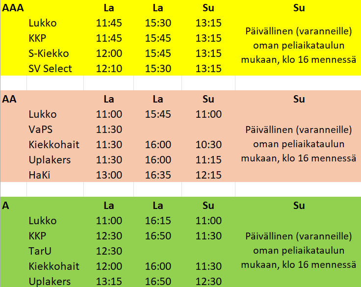 Pelaajille ja toimihenkilöille järjestetään ruokailumahdollisuus Lähdepellon huoltorakennuksessa tapahtumapaikan yhteydessä.
