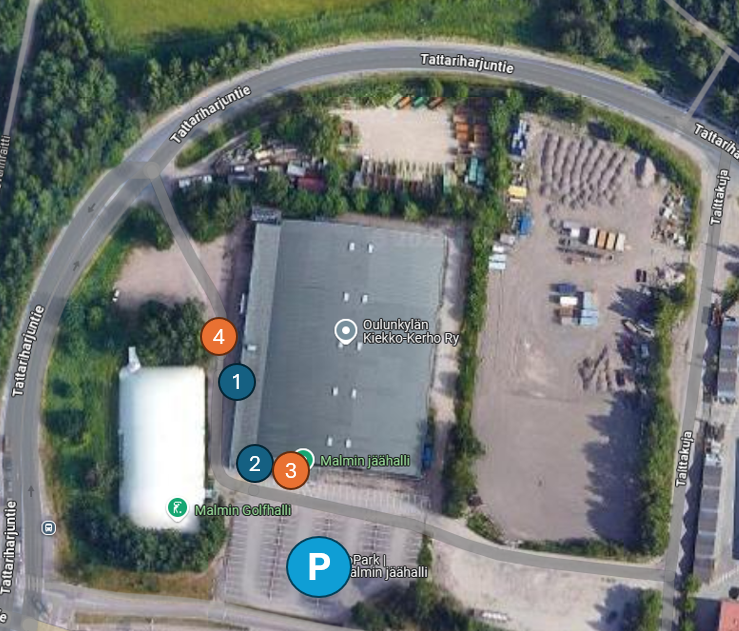 Parkkitilaa löytyy Malmin jäähallin edustalta (P). Parkkipaikalle kulku Talttakujan kauttaa.