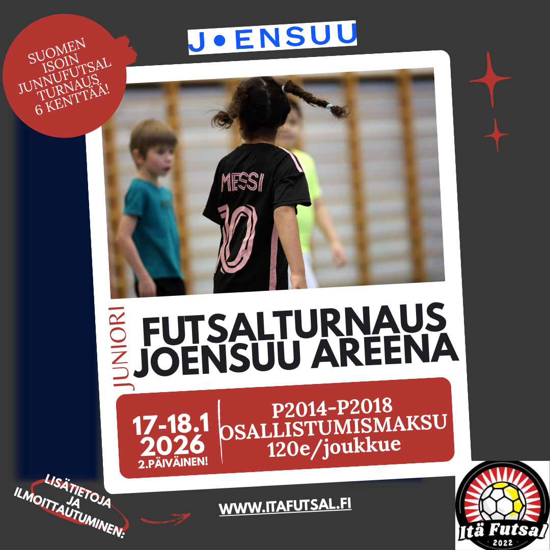 Ilmoittautuminen tapahtumalinkistä yllä, sähköpostilla itafutsal@outlook.com tai nettisivujen ilmoittautumislomakkeen kautta https://www.itafutsal.fi/junioriturnaus-2026/