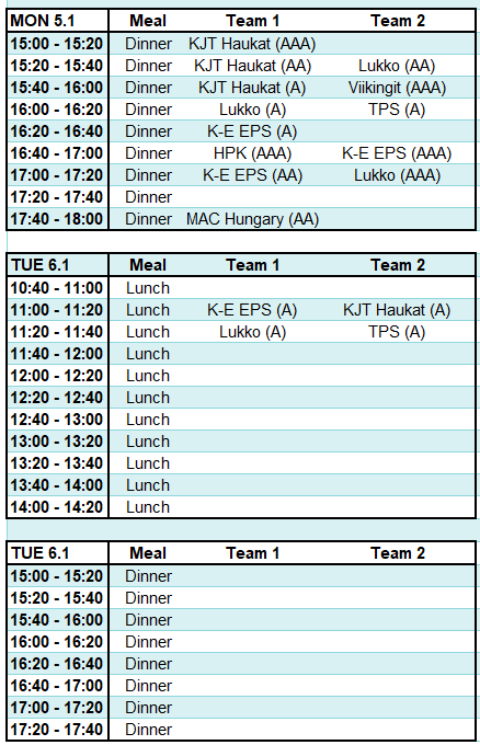 Once Tuesday schedule is known. Please book your preferred eating slot through tournament office.