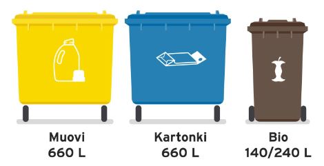 Pukukopeissa on erikseen biojäteämpärit ja sekajäteastia. Kartongit ja muovit tulee viedä piha-alueella oleviin jäteastioihin.