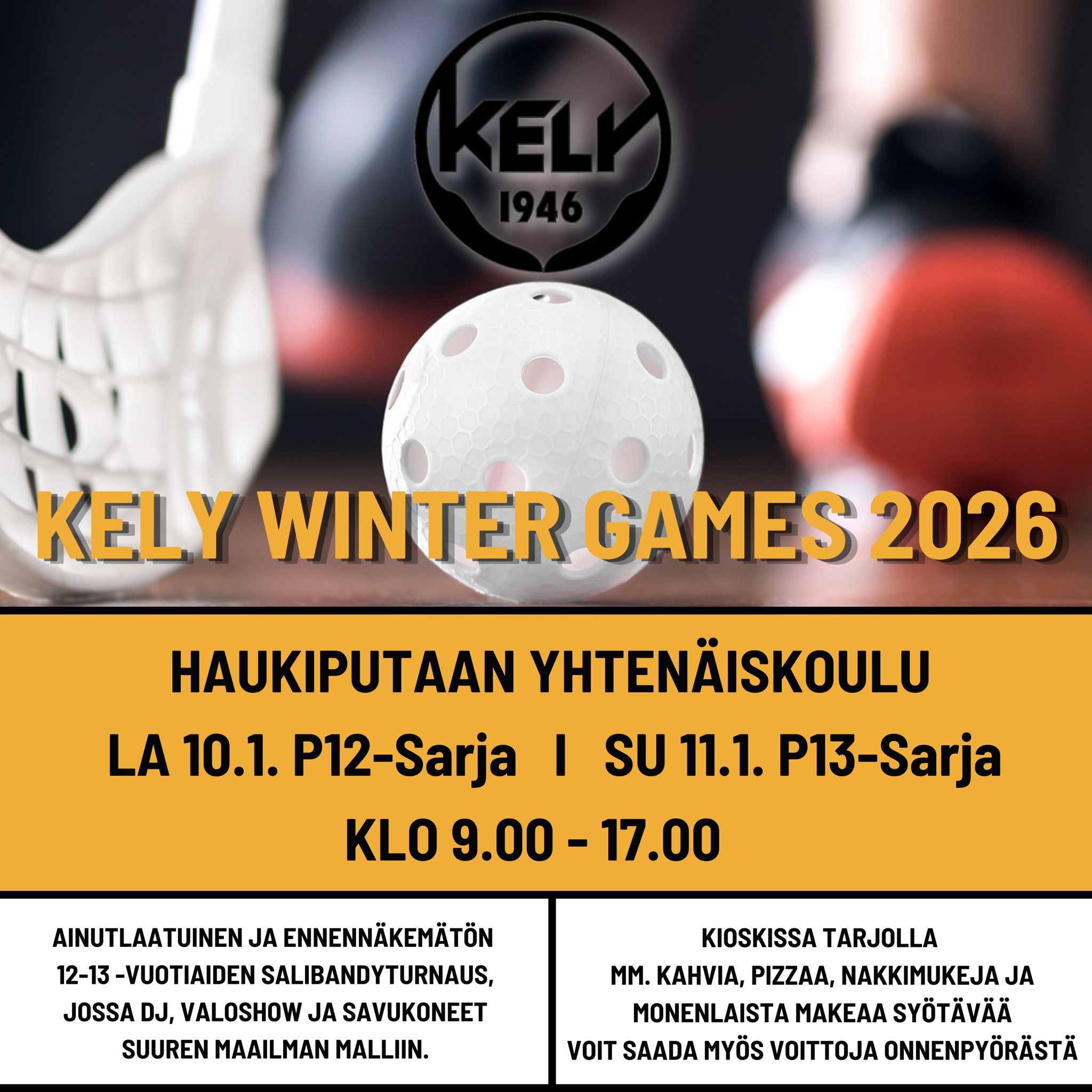 Tervetuloa KeLy Winter Games 2026 Sponsored by Nuvoo -salibandyturnaukseen 10 - 11.1.2026