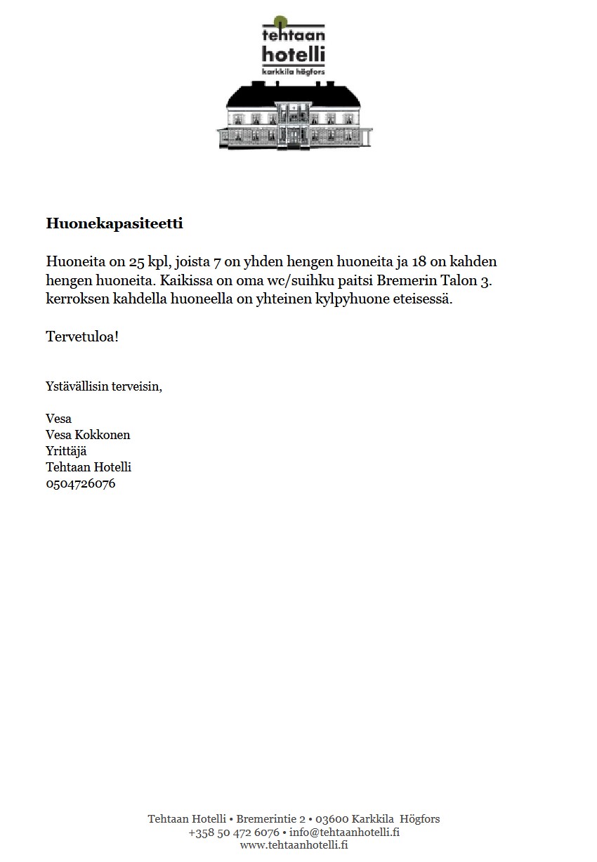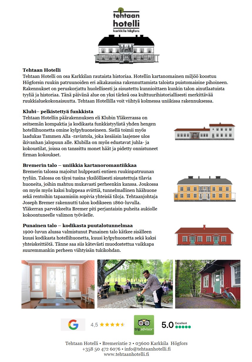 Turnauksen majoituksesta vastaa yhteistyössä Karkkilan Tehtaan Hotelli, jossa osallistujille on tarjolla erikoishinnat.