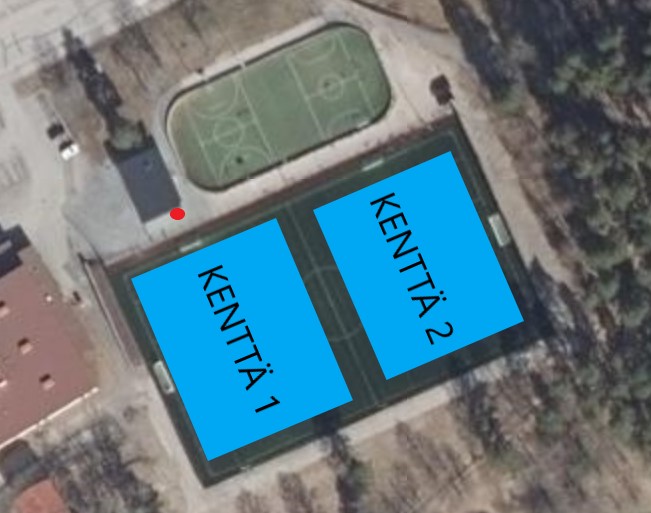 Punaisen pisteen kohdalla sijaitsee huoltorakennus, josta löytyy kaksi yhteiskäytössä olevaa pukuhuonetta sekä WC tilat.