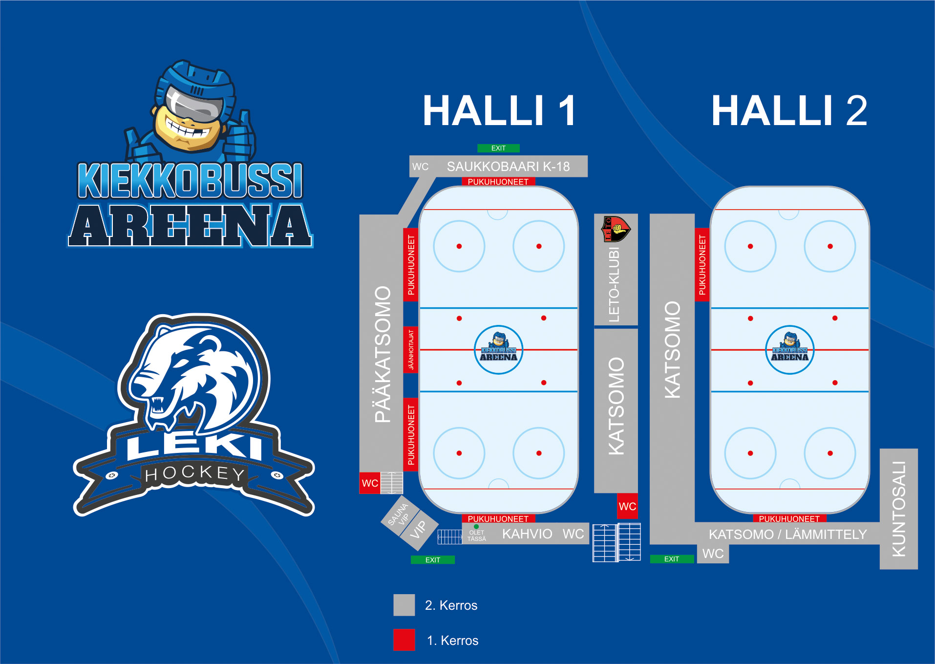 Halli 1:ssä on istumakatsomo, halli 2:ssa seisomakatsomo. Molempiin katsomoihin kulku tapahtuu rappusia pitkin.