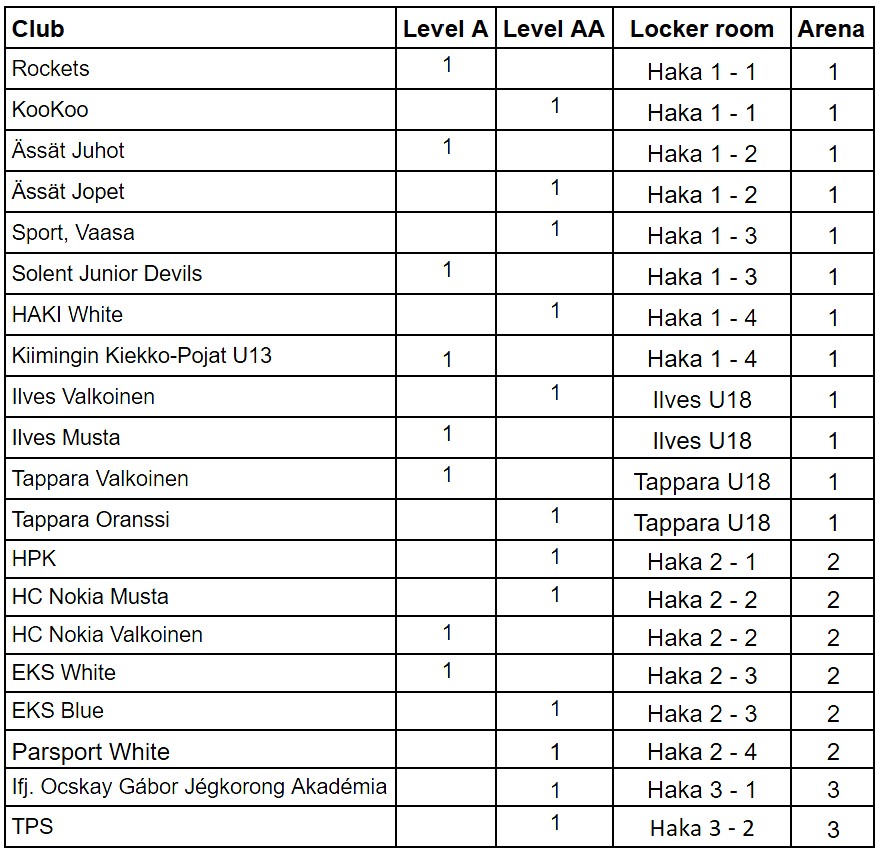 Changing rooms are located in all three arenas. Some teams will need to share changing rooms with another team or club. The same changing rooms will be available to teams throughout the entire weekend.