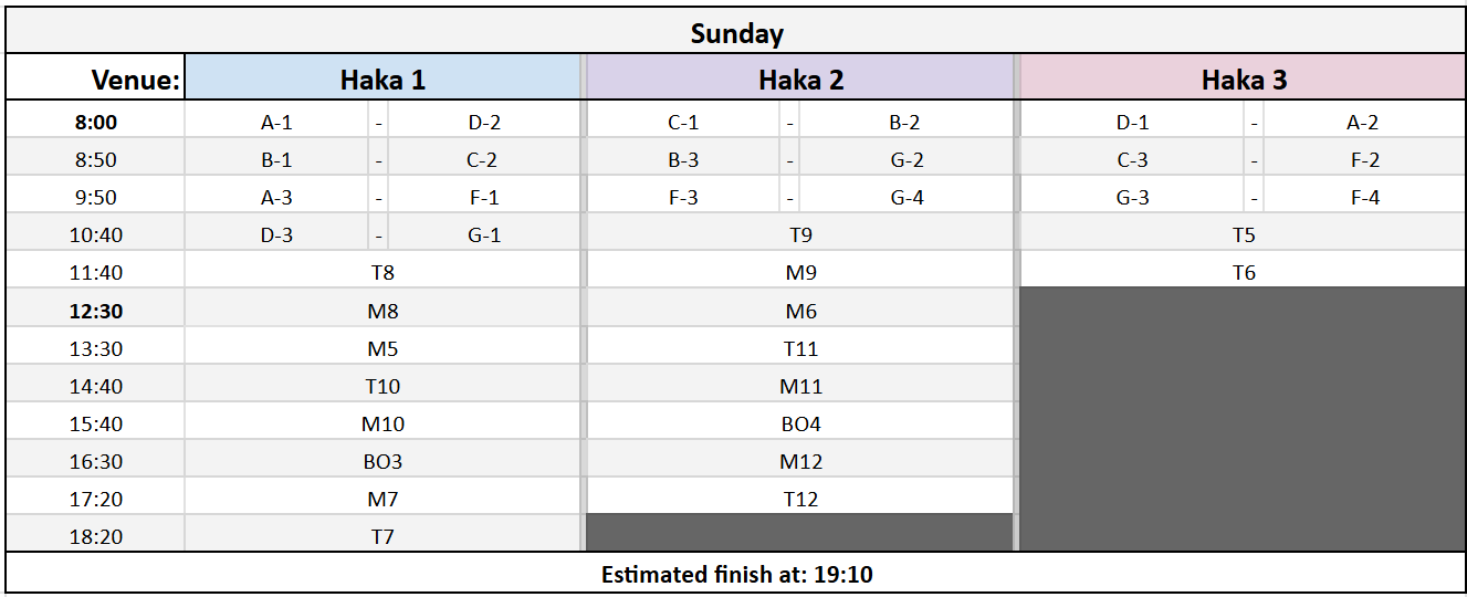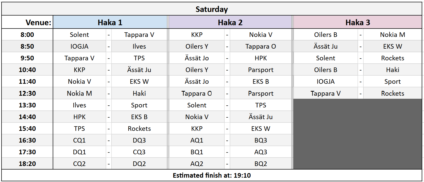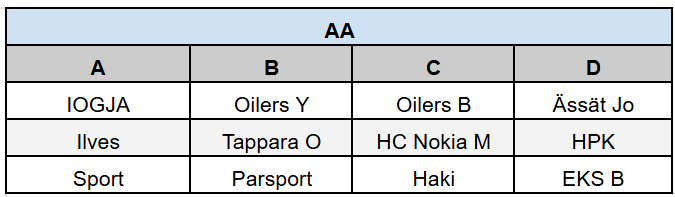 Pool standings (A-1, B-1…) for playoffs are based on points from pool games and pool out games.